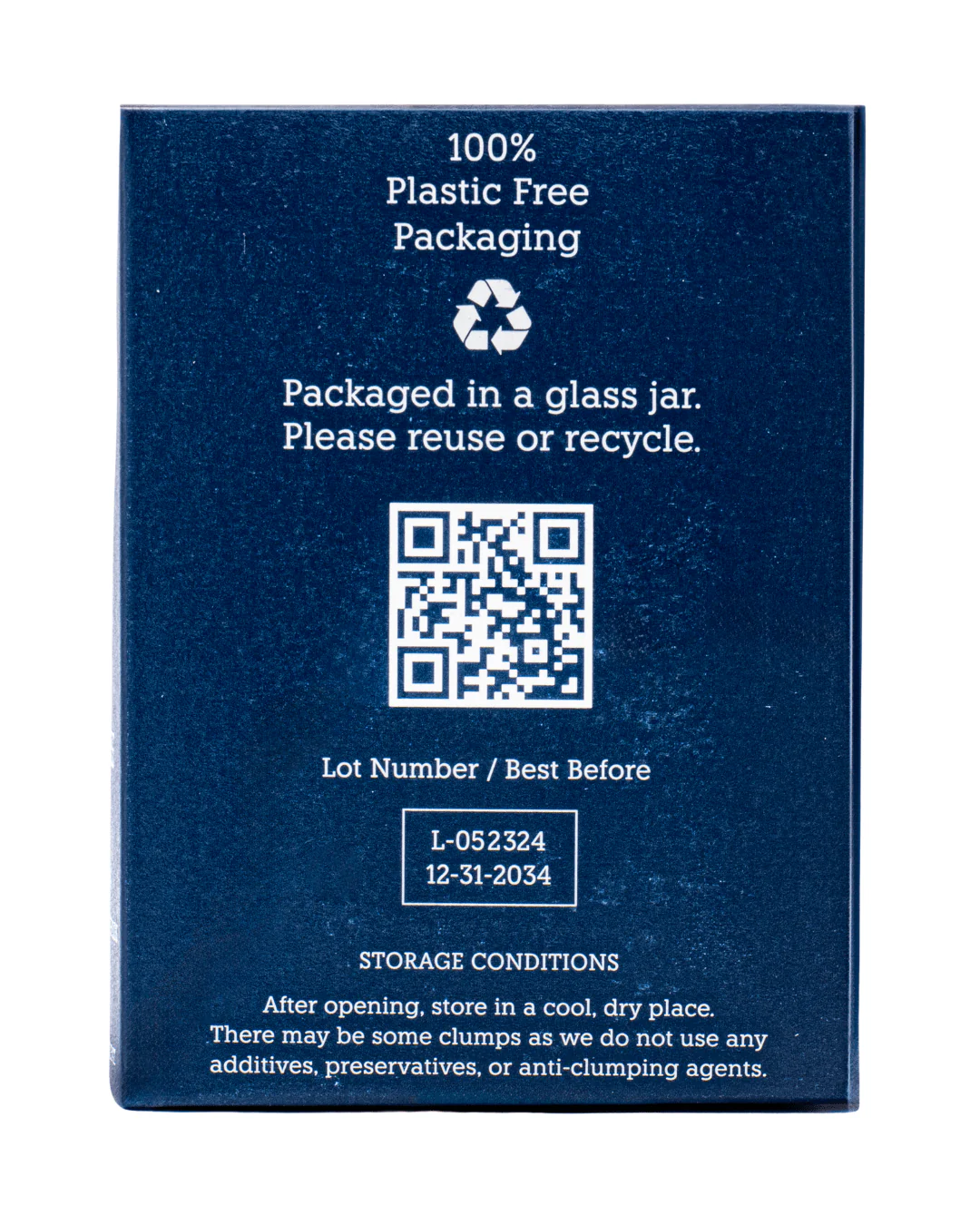 100% plastic-free packaging made of a paper cardboard box that houses a glass jar. As a result, the salt never comes in contact with plastic.